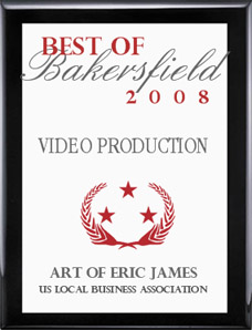 eg Productions is the prideful recipient of the prestigious "Best of Bakersfield" Award in the video production category for 2008. We would like to thank our lead director and cinematographer; Eric James Swearingen of the Art of Eric James Studios for all of his accomplishments and winning this advantageous trophy. |